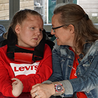 Bodil is nu achttien jaar. Sinds 2017 gebruikt ze een oogcomputer. Dat hadden we voorheen nooit gedacht. Maar Bodil begrijpt alles, ze kan het alleen niet altijd uiten en zit soms gevangen in haar eigen lichaam. Maar ze heeft dingen door en maakt ook zinnen met de picto’s op de computer. En humor heeft ze ook. We weten precies wanneer ze het gezellig vindt, bijvoorbeeld als ze samen met haar broers is.